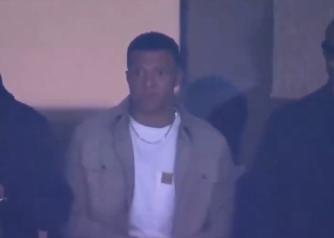 看台上为球队助威,姆巴佩现场观看皇马主场对阵曼城